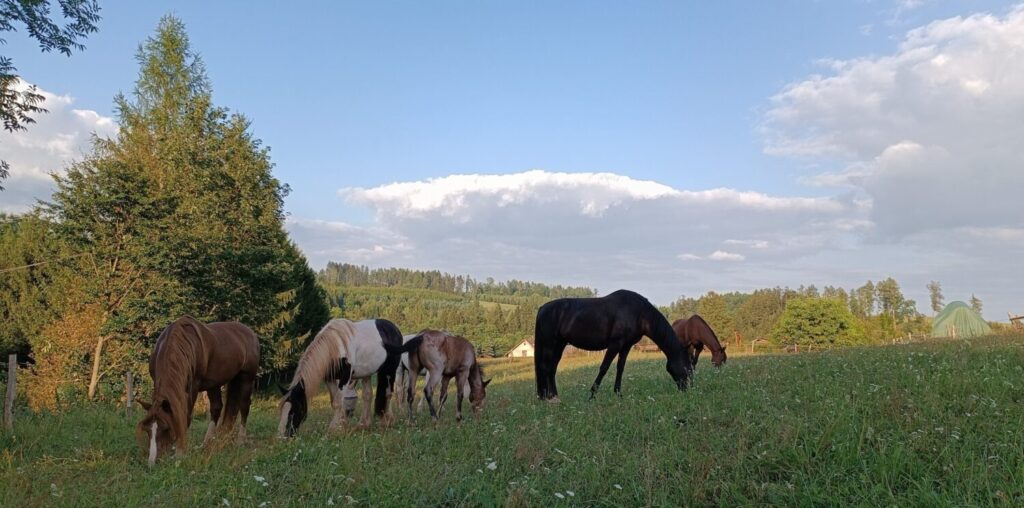 Budujeme ráj pro nás i pro koně. Malé stádo, velké pastviny, zpevněné treky, stromy, tůně a výhled na Sněžku.