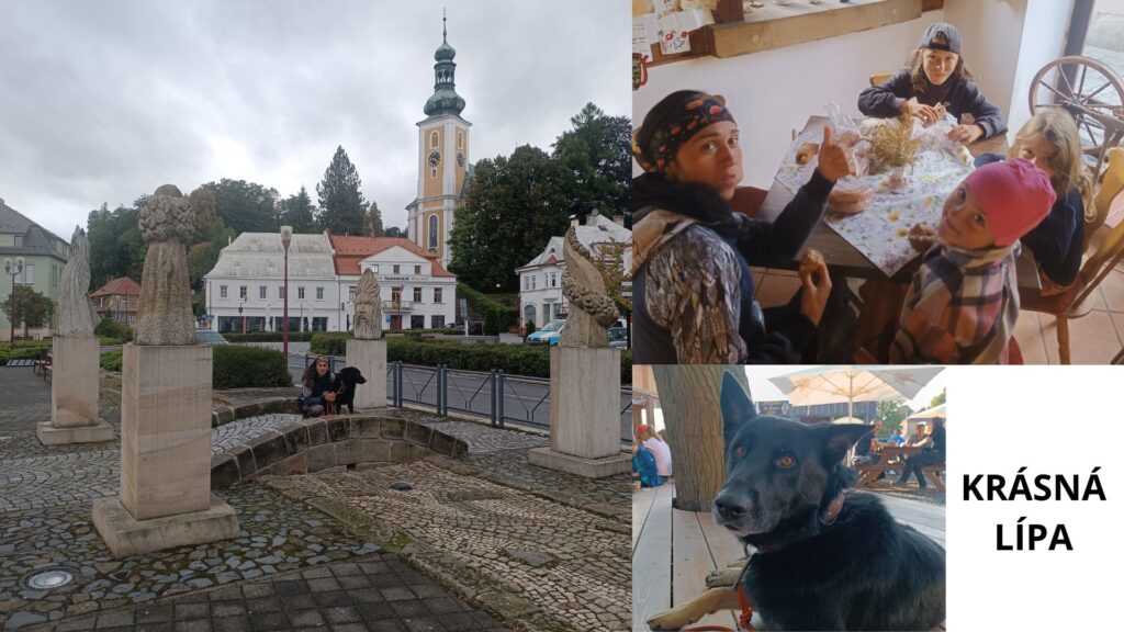 Krásná Lípa je rodiště našeho anděla strážnýho Ragiho. To z ní udělalo povinnou zastávku. 2 věci mě tam překvapili a jedna zachránila. Překvapilo mě krásný velký Íčko a mostík na náměstí, na kterým nestrašili žádní svatí mrtví, ale jehož každý jeden roh byl věnován jednomu z živlů. Všechny místa uctívající přírodu a život se mě vždy nějak hlouběji dotýkají a jsem za ně vděčná. A co mě zachránilo? Pekárna s posezením, kde jsme si mohli koupit snídani a sníst jí a pak si koupit ještě druhou teplou snídani a sníst jí v teple. Venku totiž už byla zima.
